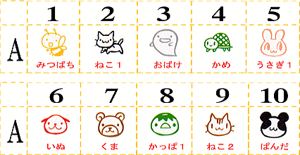 | ★あいきゃら(だいたい、縦10mm×横10mm)です。★クラスで一人一本ずつ等、大量に必要な場合は事前にお問合せ下さい。★このシリーズは『おなまえBOX』のおまけで1個入っています。※上の絵の色は実際のゴム印には付いておりません。★こちらの商品は、送料一律80円のメール便でお届けします。【お支払い方法にご注意下さい】商品名に「メール便限定・代引不可」と記載された商品のみご購入頂きました場合は、メール便の配送となります。クレジットカードまたは郵便振替(ゆうちょ銀行前払い)でお願い申し上げます。※宅配便不可です。代引きでご購入の場合は 当店にて郵便振替にご変更をさせて頂きます。 何卒ご了承下さいます様お願い申し上げます。 注文画面及び楽天自動返信メール上は宅配便となりますが、 石松堂からの受注確定メールで送料の修正をします。 また、例えばこの商品を3本ご購入の場合、送料が 80円 x 3本=240円と注文画面及び楽天自動返信メール上は 表示されますが、石松堂にて80円に修正をします。 石松堂からお送りする受注確定メールにて修正が確認出来ます。画像3のB行へ画像3のC行へ画像3のD行へ画像3のE行へ画像3のIS行へ学校 幼稚園 保育園おなまえBOXのページへ おなまえとっぴんぐのページへお名前スタンプ おなまえ はんこ お名前スタンプ セット ゴム印 ゴム おなまえBOX お名前BOX 布 布用